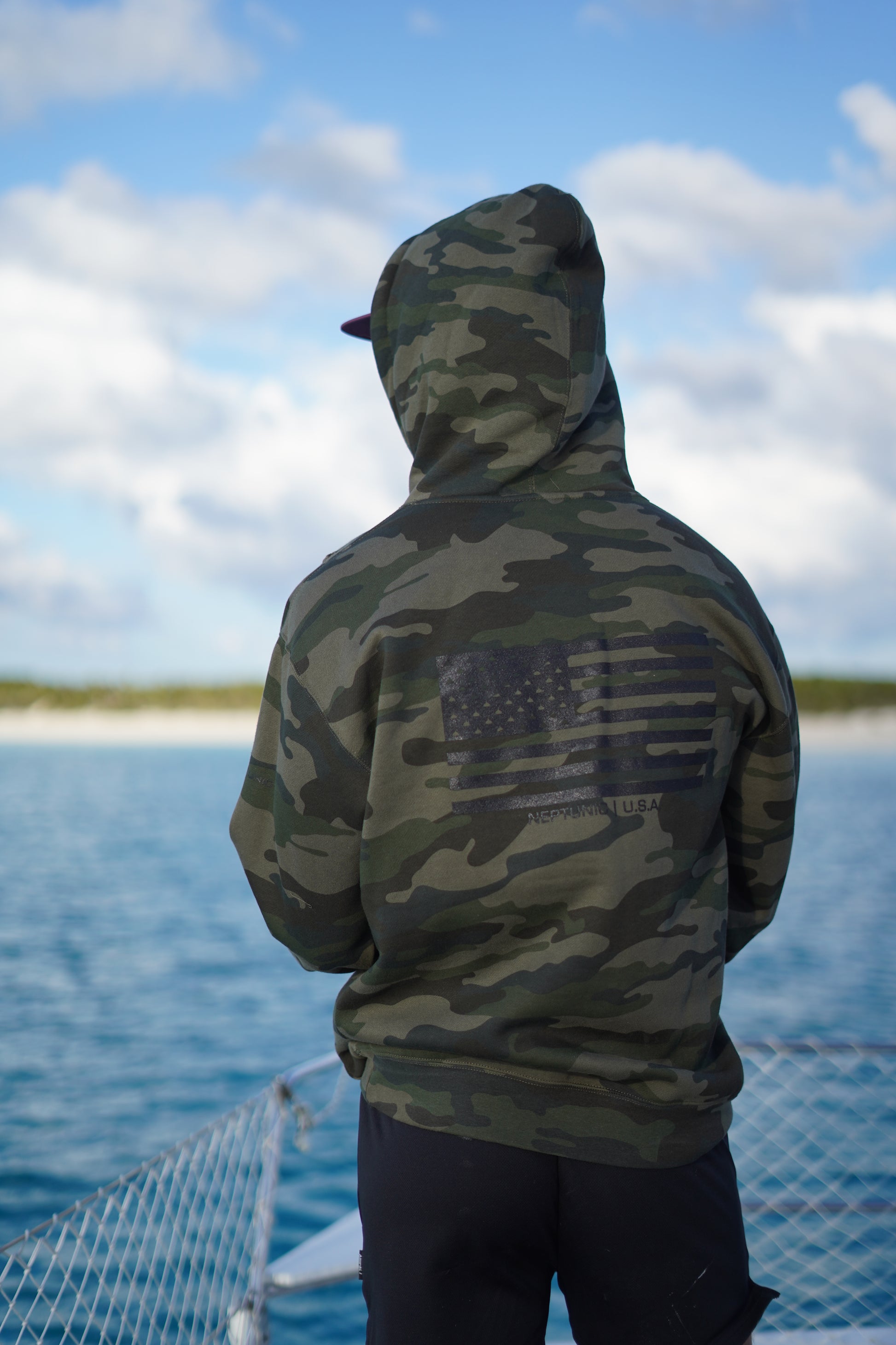 The Neptunic Freedom Camo Hoodie brings comfort and purpose together. Built from heavyweight fleece and designed with a tonal flag back print and signature Neptunic branding, this hoodie delivers warmth, durability and a sharp camo look for every day. Perfect for cool mornings, boat days or evenings on the move. A classic fit made for ocean-minded freedom seekers.
