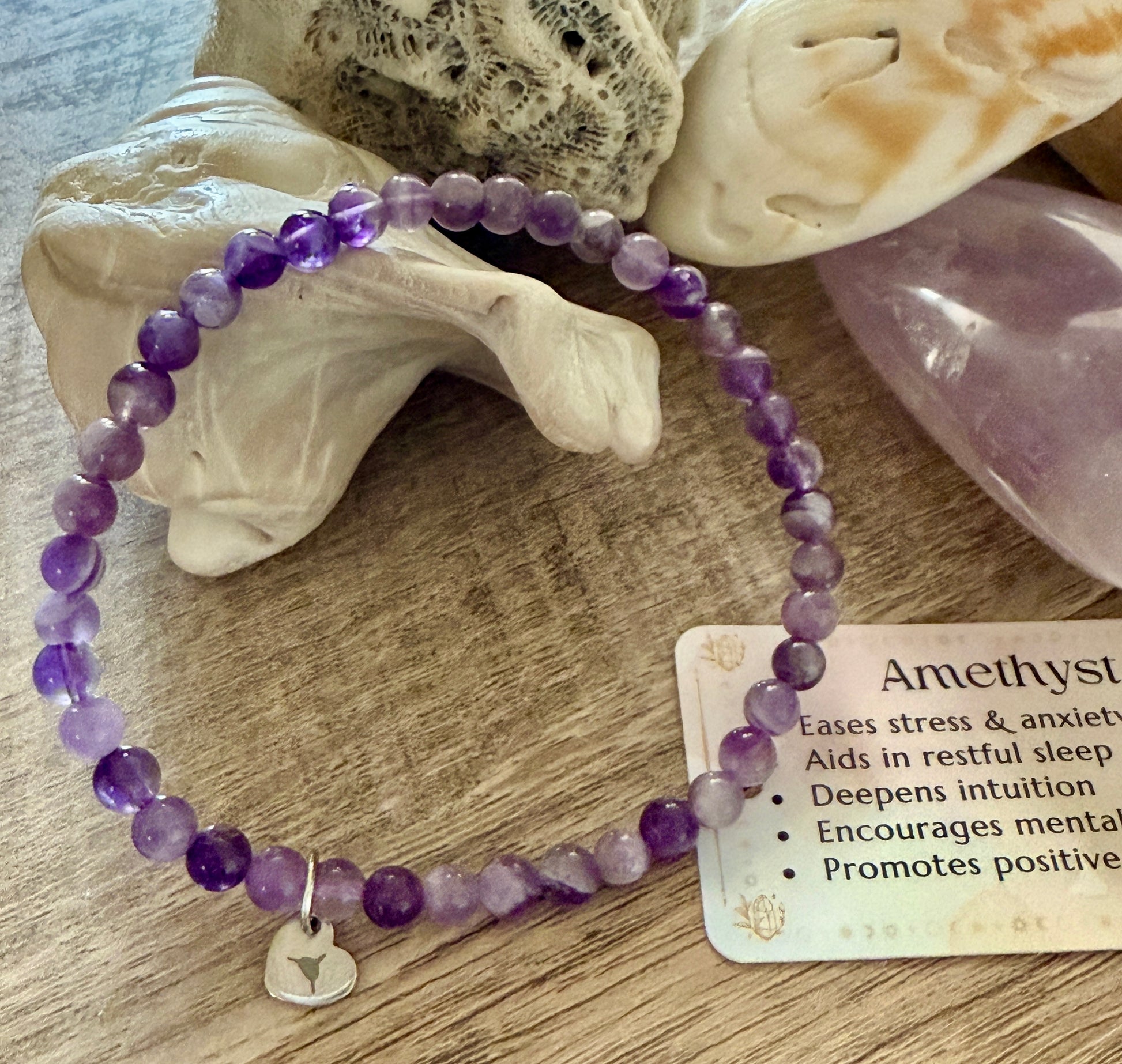- Beads: 4mm polished Amethyst