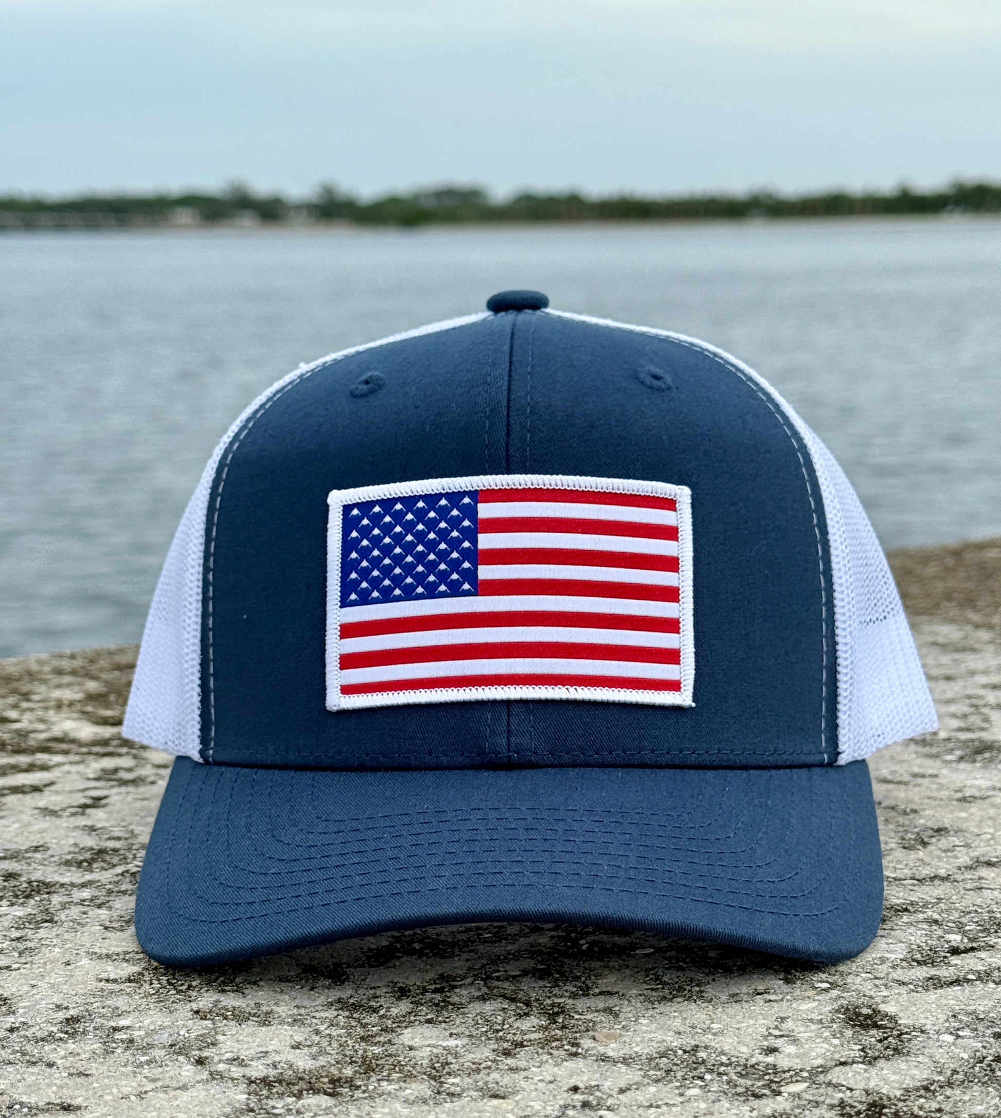 Show your American pride in style with the Neptunic Patriot Hat. Featuring a bold embroidered American flag patch front and center, this classic trucker-style hat combines a structured navy blue front panel with breathable white mesh backing for all-day comfort. The adjustable snapback closure ensures a perfect fit for any head size, while the timeless red, white, and blue design makes it a standout for the 4th of July, Memorial Day, or any day you want to celebrate freedom.