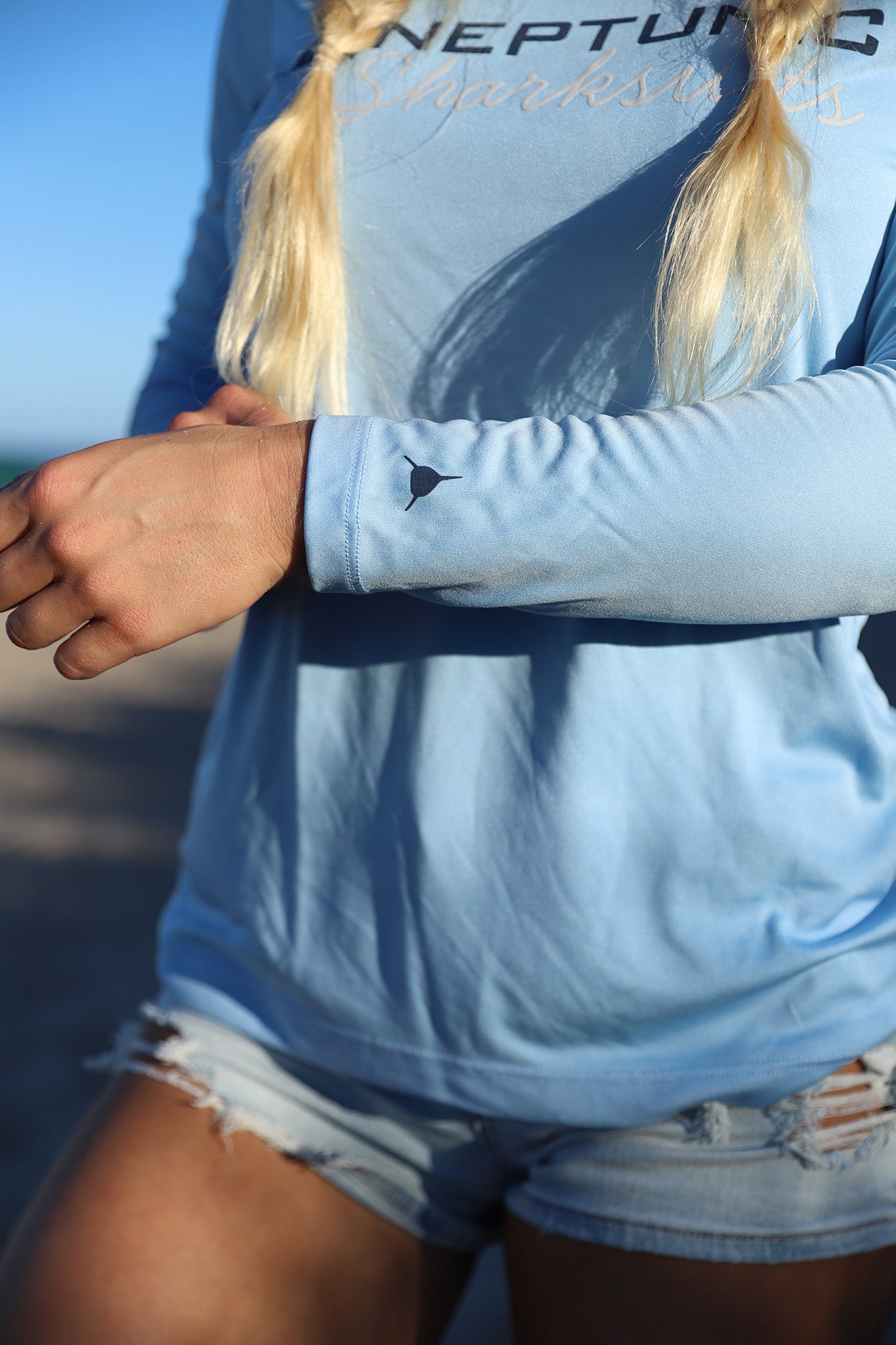 Protect your skin in style with the Neptunic Women’s Signature SPF Tee. Featuring our clean, signature logo across the chest, this lightweight long sleeve is made for long beach days, boat rides, and shark-loving adventures. With built-in sun protection and a flattering, athletic cut, it’s the perfect blend of function and feminine edge. Your go-to for salt, sun, and serious comfort.
