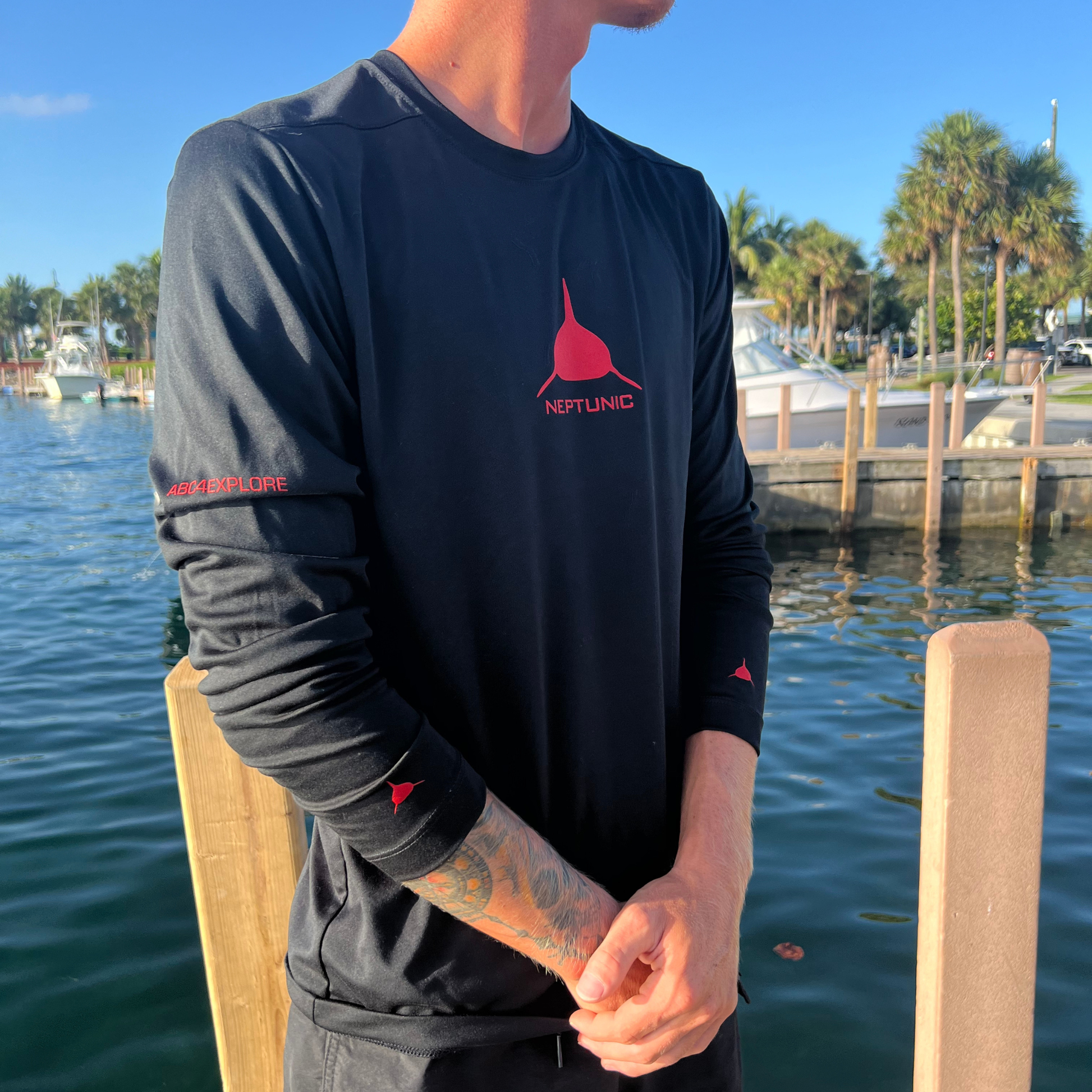 Inspired by exploration and fearless adventure, this UPF 50+ performance tee was designed in collaboration with Emmy Award-winning cinematographer Andy Casagrande. The bold red flag logo symbolizes courage and freedom, while the moisture-wicking, breathable fabric keeps you cool and protected on land or at sea.