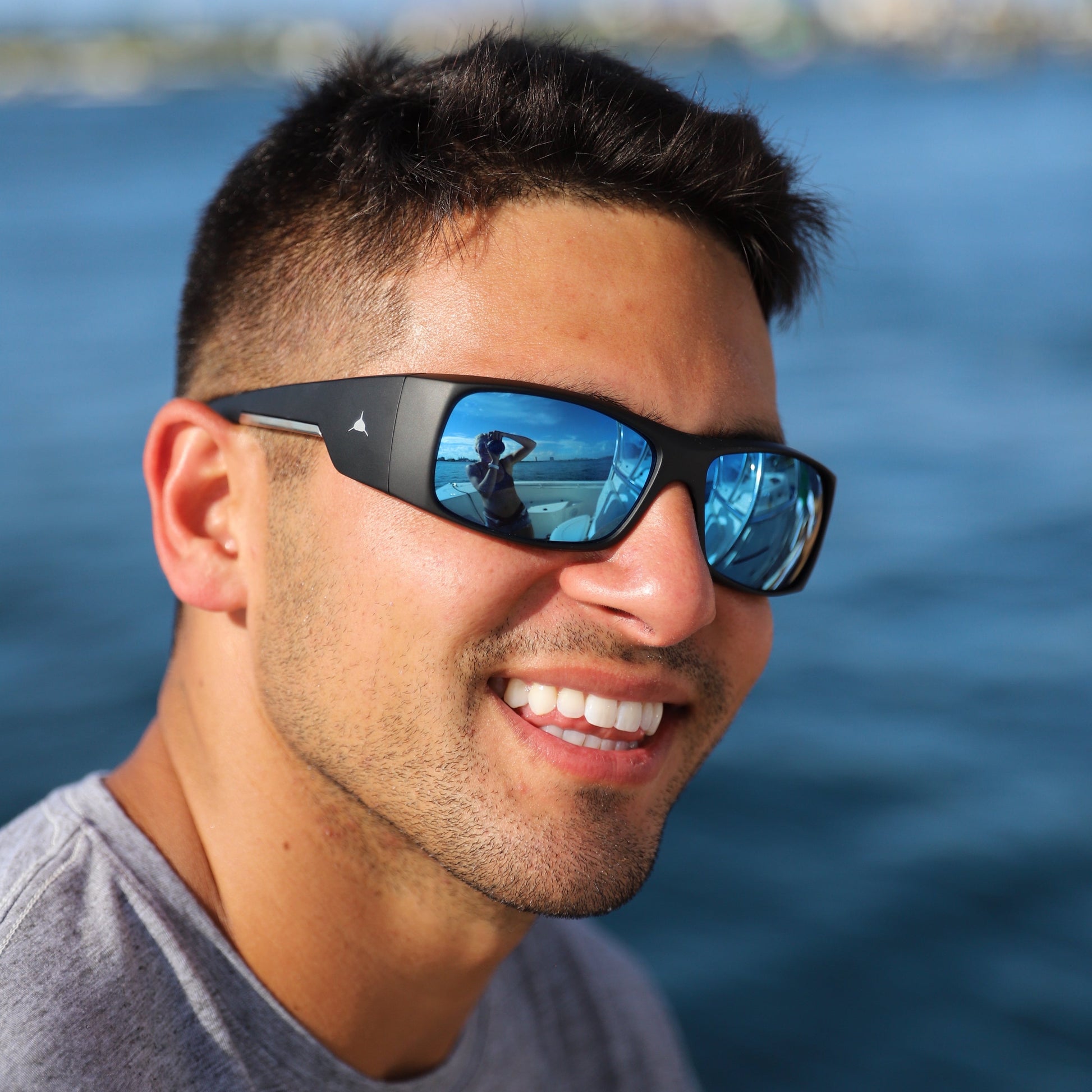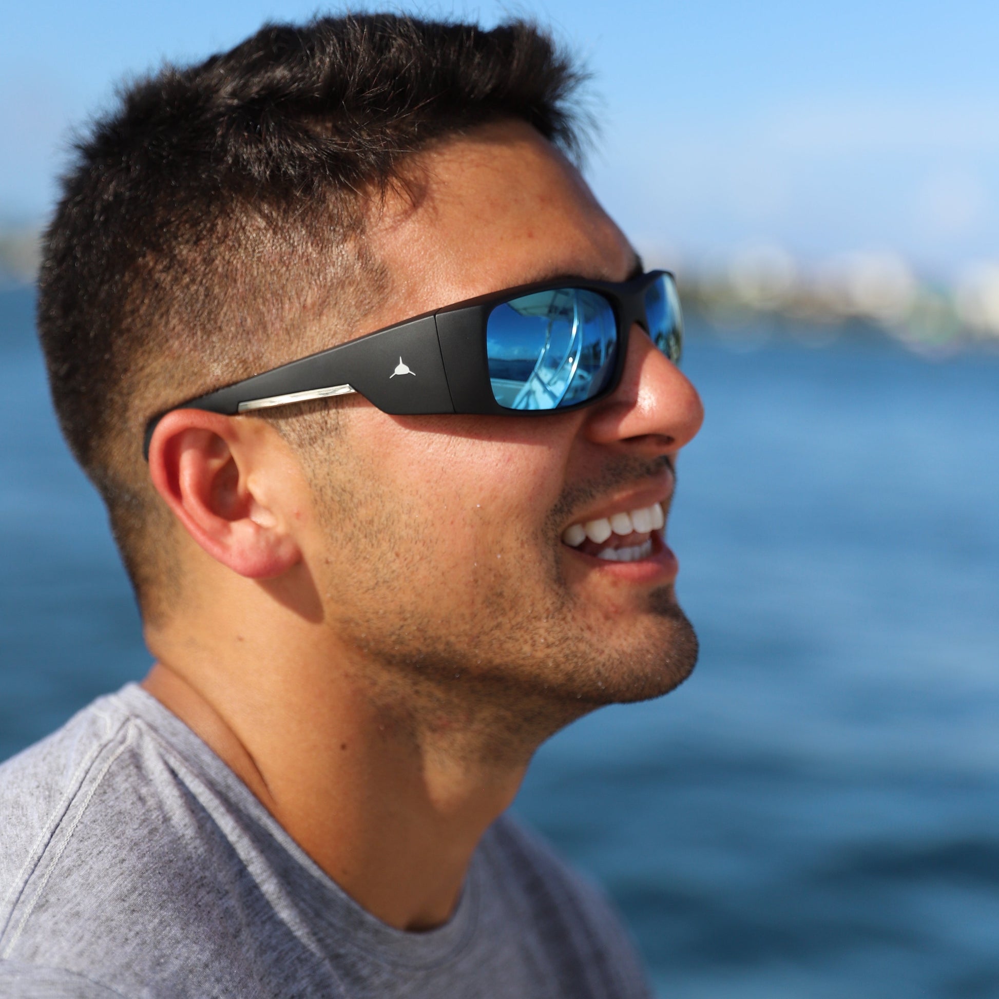 Bright Blue Polarized Lenses Perfect For Open Water. Wrap Around Snug FIt.